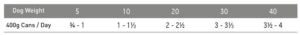Consult your veterinarian before use. Feed according to your dog’s size as the sole food source. Fresh water should always be available.