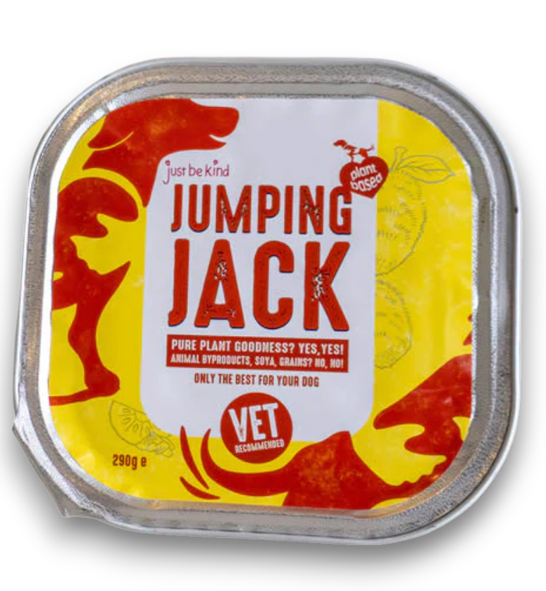 Delight your dog with Jumping Jack, a nutrient-rich, wholefood plant-based diet featuring faba bean, jackfruit, hemp seeds, quinoa, and other natural ingredients. With a hearty, appetising aroma and taste, this complete wet food is designed to support gut health, immunity, skin and coat, and gentle renal and urinary function — perfect for dogs with sensitivities or those requiring a hypoallergenic, grain-free diet so if your pet has any renal or urinary issues, as well as allergies or itchy skin, this is the perfect food.
