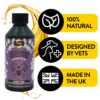 Horsetail and Pellitory of the Wall act as mild natural diuretics, aiding urinary elimination, while Reishi and Astragalus enhance circulation and vitality. Liquorice root and cinnamon help with digestion, stress reduction, and palatability, ensuring your dog accepts the oil easily.
