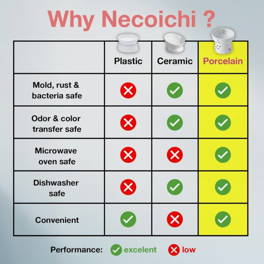 Give your kitty (can be used for small dogs too) the utmost comfort during hydration with the Necoichi Raised Cat Water Bowl. By raising the water/Food to your cat’s level, it makes drinking/eating and swallowing easier—especially for older cats or those with arthritis—reducing neck strain and supporting joint health. Proper hydration is essential for cats with urinary or kidney issues, and this bowl helps ensure your pet drinks enough every day.
