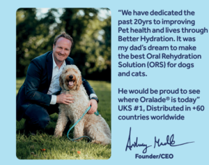 “Our older cat had been struggling with dehydration and wasn’t drinking much, especially after a recent urinary infection. Since we started using Oralade, she eagerly drinks it from her bowl, and I can already see a difference. Her vet even commented on how well she looks. It’s reassuring to have something so palatable and effective at home, I can’t recommend it enough!” — Colin L.