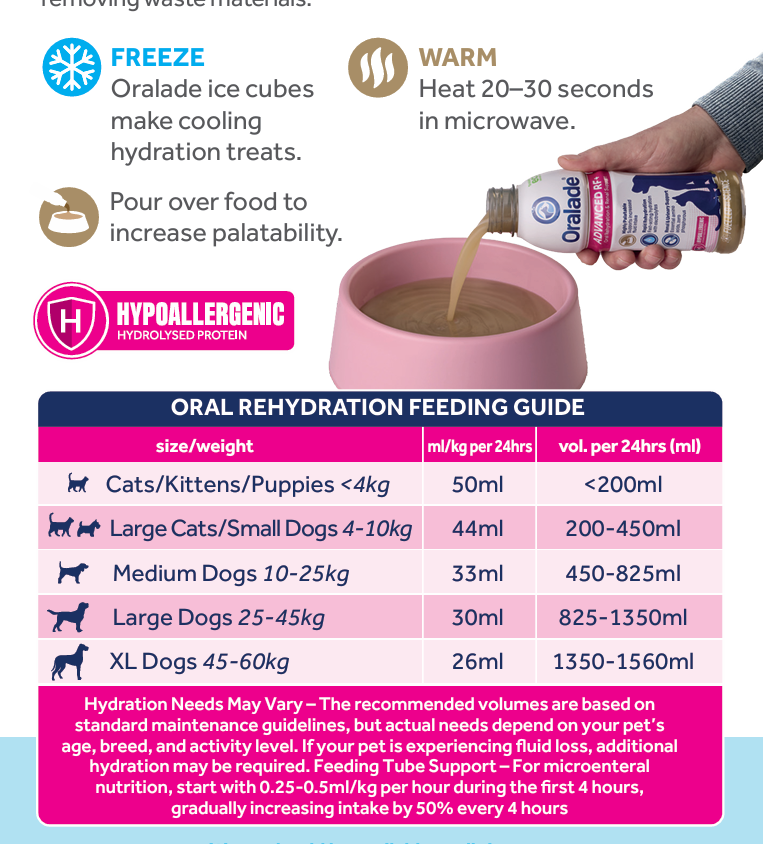 Highly palatable natural chicken flavour – Encourages fluid intake, even when your pet is nauseous or unwell. Taste really matters, and pets love it.