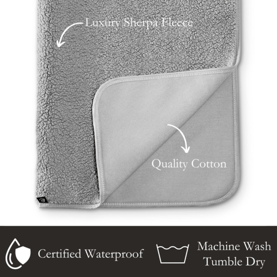 Made from the softest Sherpa fleece and natural cotton, each blanket features a hidden ISO 811-certified waterproof membrane, giving your pet a luxuriously soft surface to relax on while protecting sofas, beds, car seats, crates, and floors. Available in two stunning colours, a gorgeous natural shade and a sophisticated grey, these blankets are designed to match your home’s style and décor beautifully, incredibly stylish. Treat your pets and your home with the comfort, elegance, and practicality they deserve.