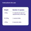 | <10 kg | ½ capsule | Daily or 1 capsule every other day |