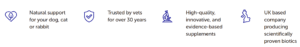 Cobalaplex contains Preplex® prebiotics, a combination of fructooligosaccharides (FOS) and acacia (gum arabic). These feed the beneficial bacteria in the gut, helping create a diverse and healthy microbiome, which optimises the absorption and effectiveness of B12 and B9. A healthy gut is especially important in pets with urinary or renal problems, as it supports overall systemic health.